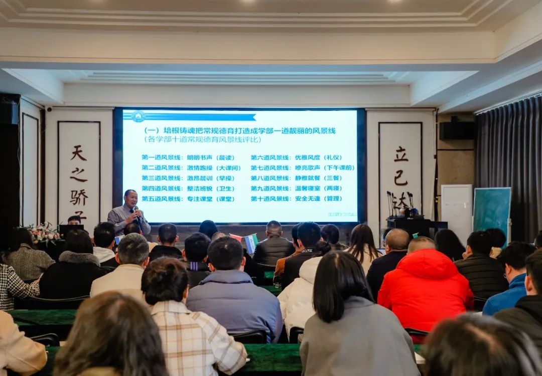 德育是育人之根本,精细科学的管理制度有效助力德育体系建设。会议宣贯了《凉山州西昌天立学校德育管理制度》,包括常规教育制度、学生行为管理制度、德育课程管理制度、学生发展管理制度、学生活动制度、学生激励制度、学生干部制度、文化育人制度、家长教育制度等,规划了本期德育内容,同时提出了本学期德育行动指南。