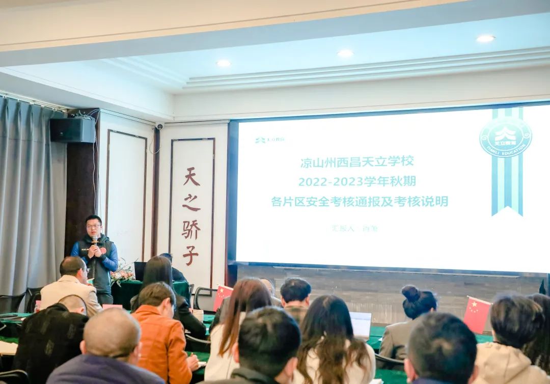 坚持以立德树人为教育根本任务,铸就内涵丰富全面发展的德育品牌,同时打造平安和谐的校园环境,2月10日,西昌天立学区召开2022—2023学年春期德育与安全工作会议,会议由学区副校长阚泽林主持,学区校长陈新奇、高中部校长李孝全、初中部校长陈威、小学部校长何梅、学区副校长兼品宣部部长周雪梅、课程质量部德育中心主任彭泽栋、后勤服务部长邹剑雷、膳食中心主任顾津、财务部长凌维先、行政中心主任赵韵洁、安全办主任肖萧以及各学部学生发展部全体成员,年级主任、年级德育主任、生活主管、食堂安全员参加此次会议。